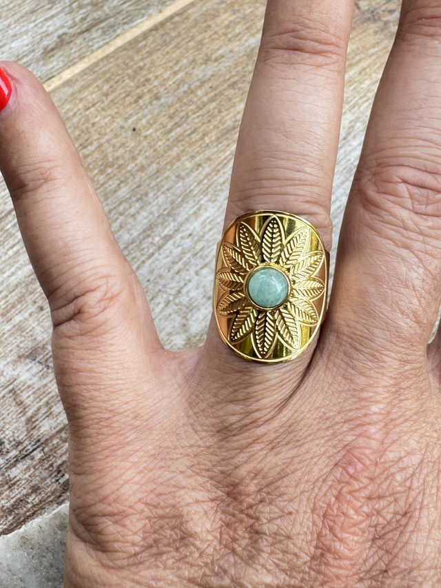 Bague Ethnique en acier Inoxydable, pierre naturelle Amazonite
