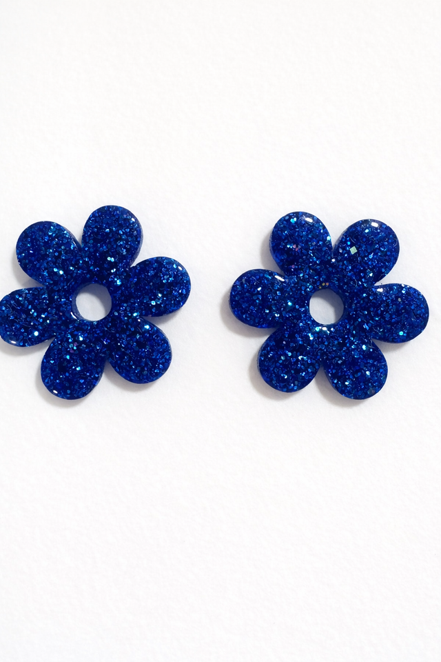 Pampilles fleurs bleues pailletées en résine, idéales pour la création de bijoux personnalisés. Ces pampilles fleurs apportent une touche lumineuse et originale à vos boucles d'oreilles. Chaque modèle est unique.
